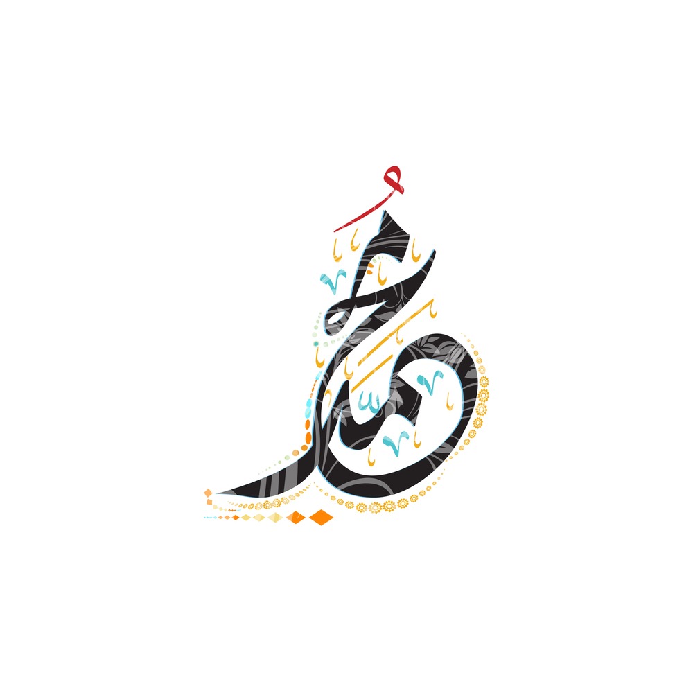 اسم محمد مزخرف و مكتوب بأجمل خط : الحمد لله - وجوابها سهل ميسور على من يسره الله عليه وهو أن النبي صلى الله عليه وسلم مع كثرة مشاغله وهمومه، وهو قائد الأمة ومرشدها، والذي ينبغي بهذه الميزان ألا يبتسم، ولكن الوارد أن النبي صلى الله عليه وسلم ما رأي إلا متبسما!