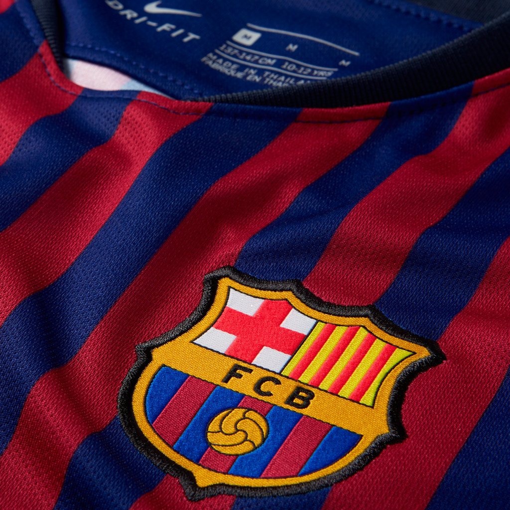 Nike FC Barcelona 18-19 Home Kit Leaked + Away & Third Kit ... - The Shirt Features A Uefa Champions League Logo On The Right Sleeve And On The Left, It Has All 5 Patches Of The Championships Won By Fc Barcelona Along With The Respect Logo.