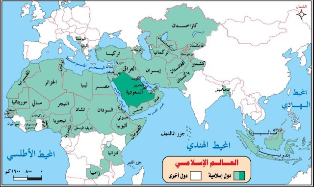 خريطة العالم الاسلامي صماء ملونة - Kharita Blog . استخدام الحاسب الالي في التربية الفنية.